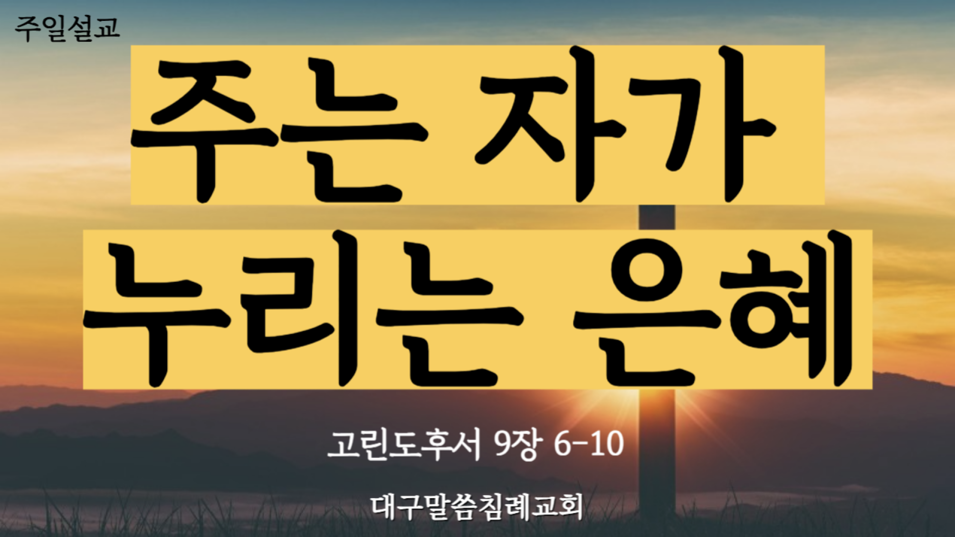 주는 자가 누리는 은혜 (고린도후서 9장 6절-10절)