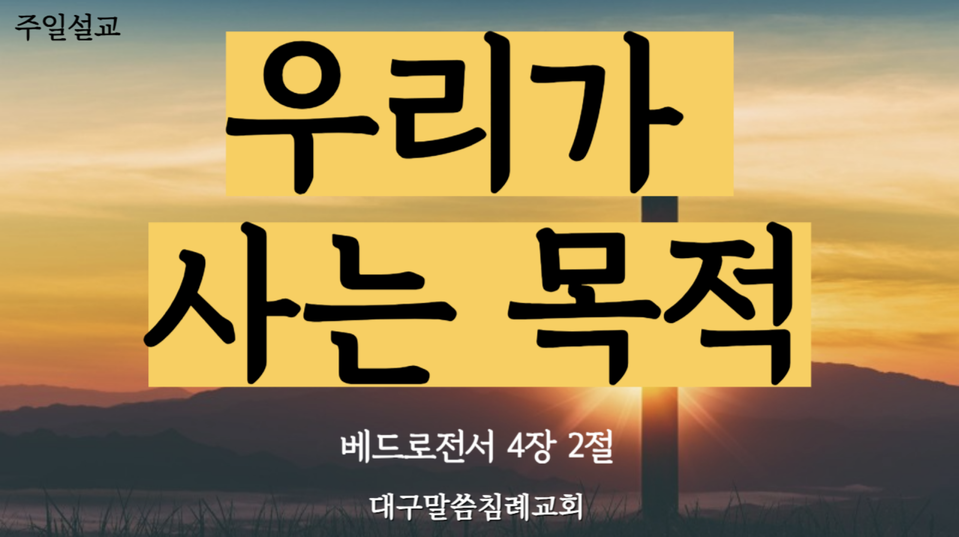 • 우리가 사는 목적은 주 예수 그리스도를 위해 사는 것이다.
