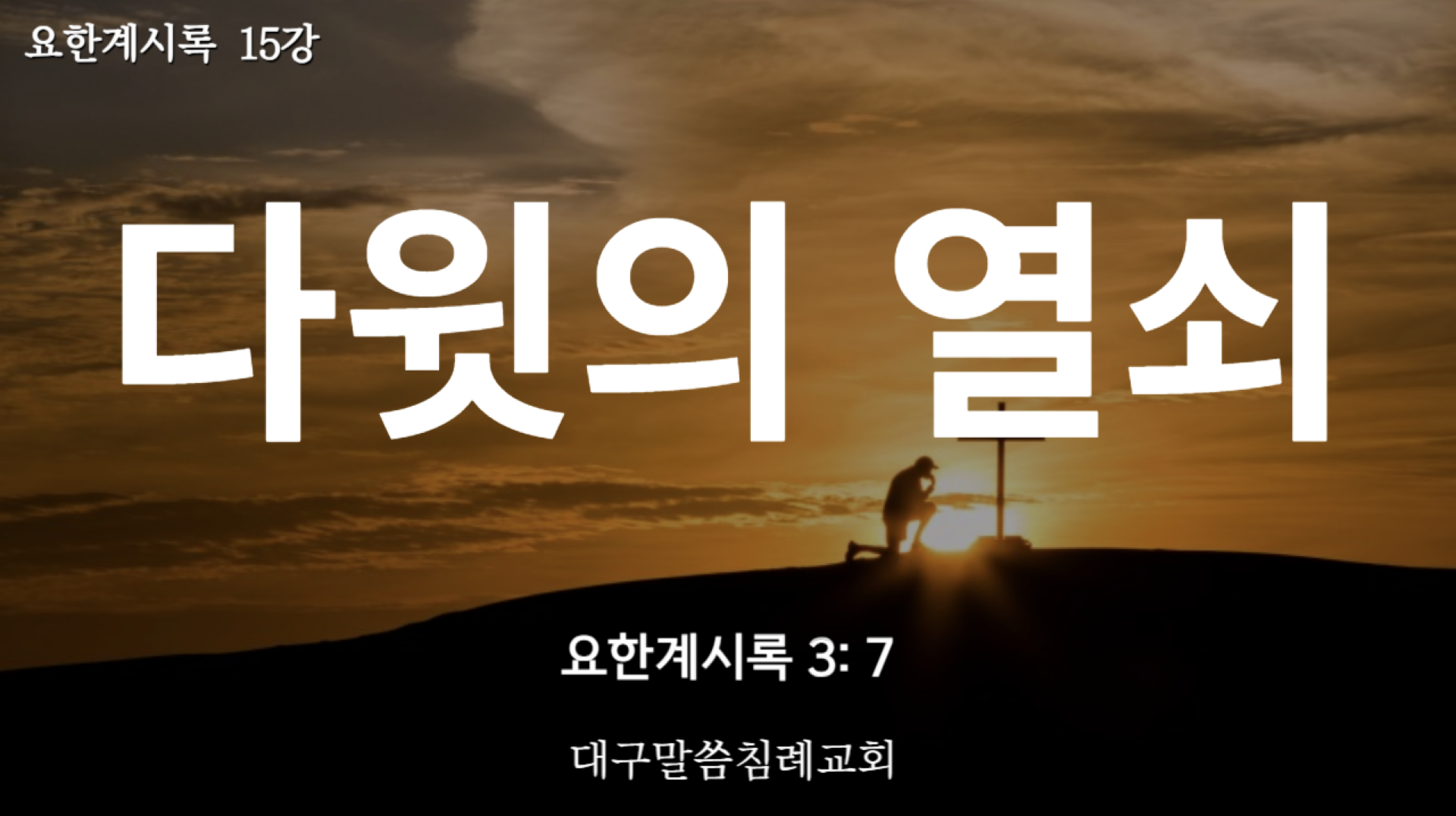 | [대구말씀침례교회] 주를 부인하는 자 (요한계시록 3장 8절-10절) (0) | 2025.05.13 |