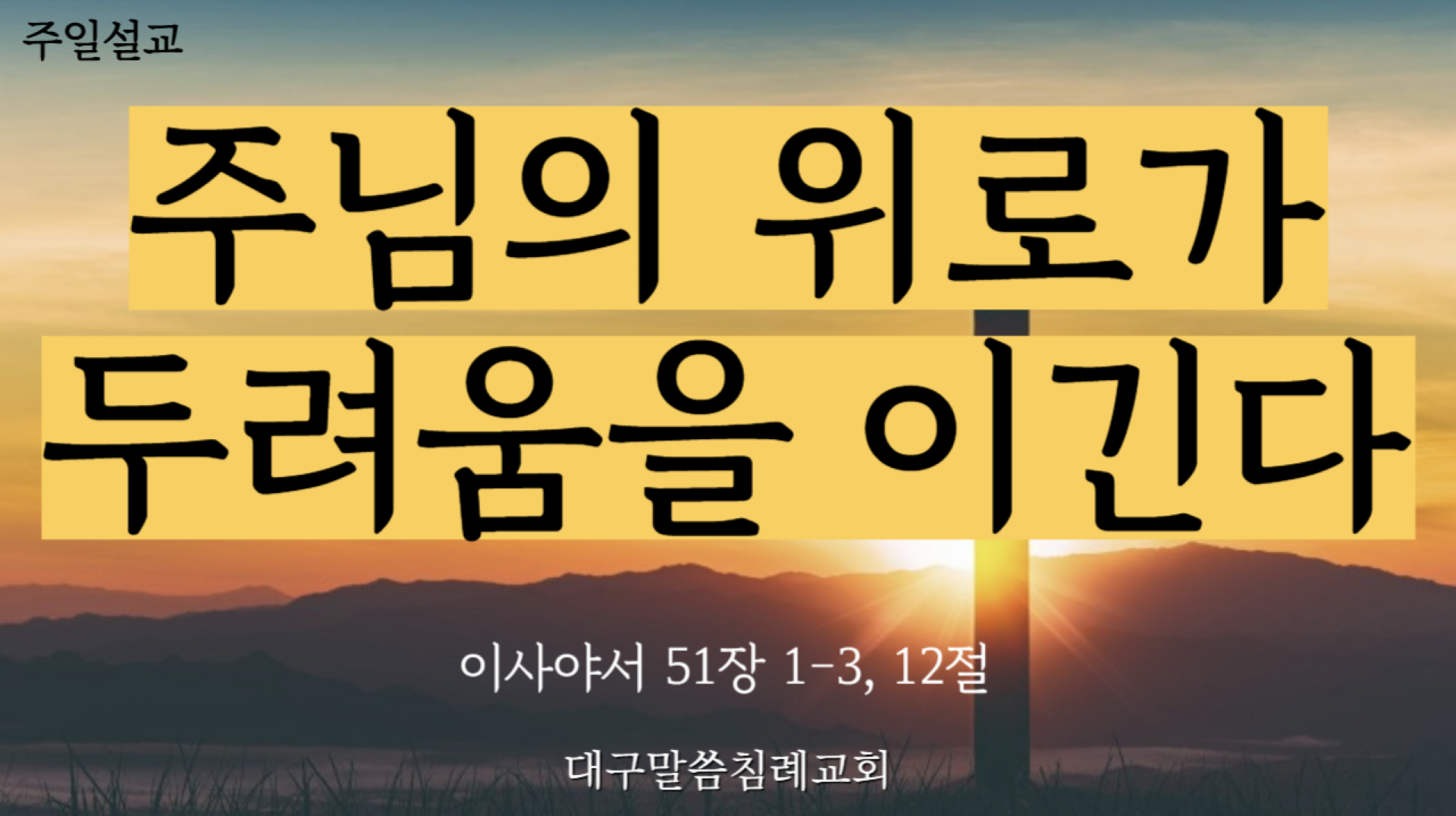 주님의 위로가 두려움을 이긴다 (이사야서 51장 1절-3절, 12절)