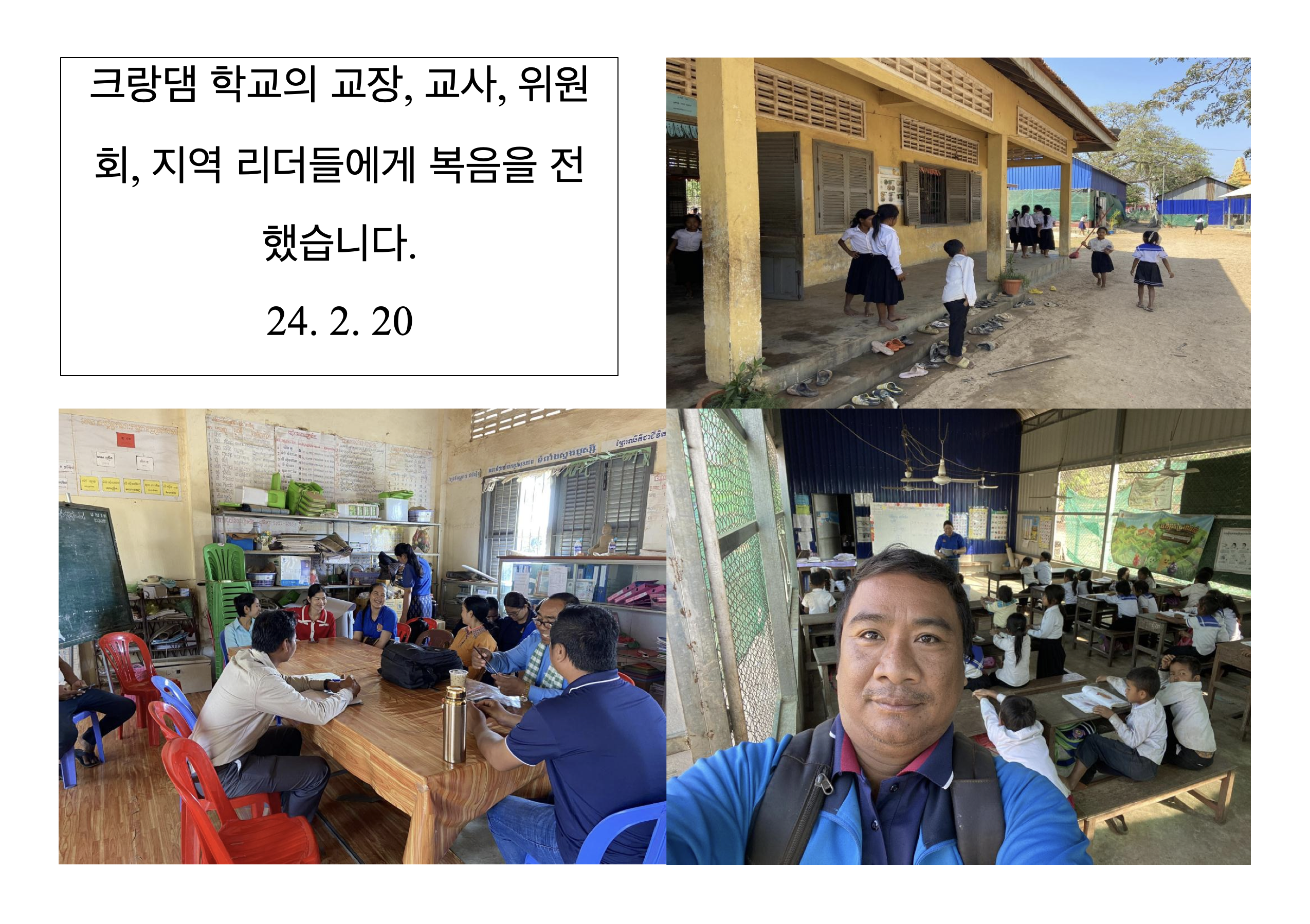 크랑댐 학교의 교장, 교사, 위원회, 지역 리더들에게 복음을 전했습니다. 2024.2.20