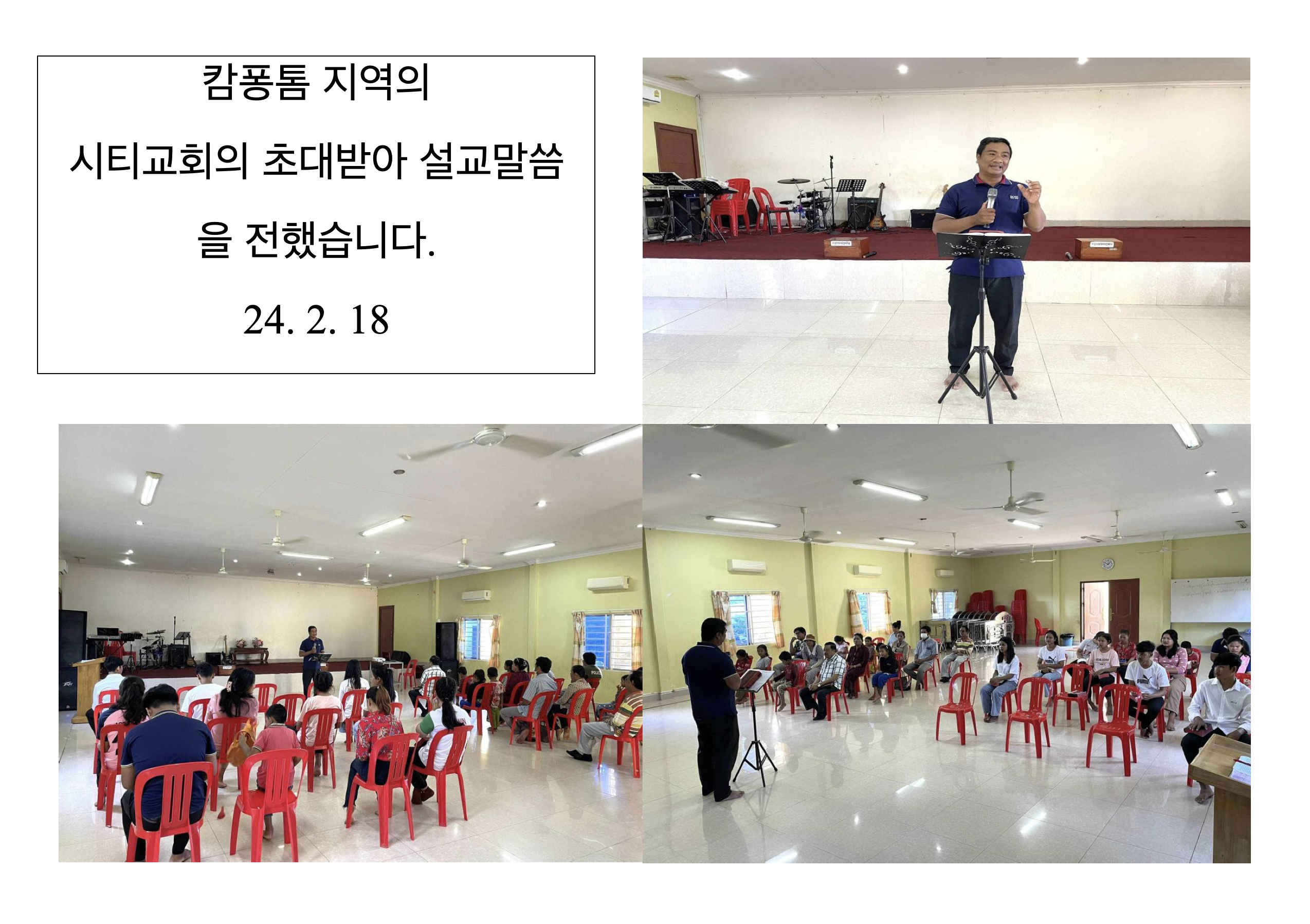 캄퐁톰 지역의 시티교회의 초대받아 설교말씀을 전했습니다. 2024.2.18