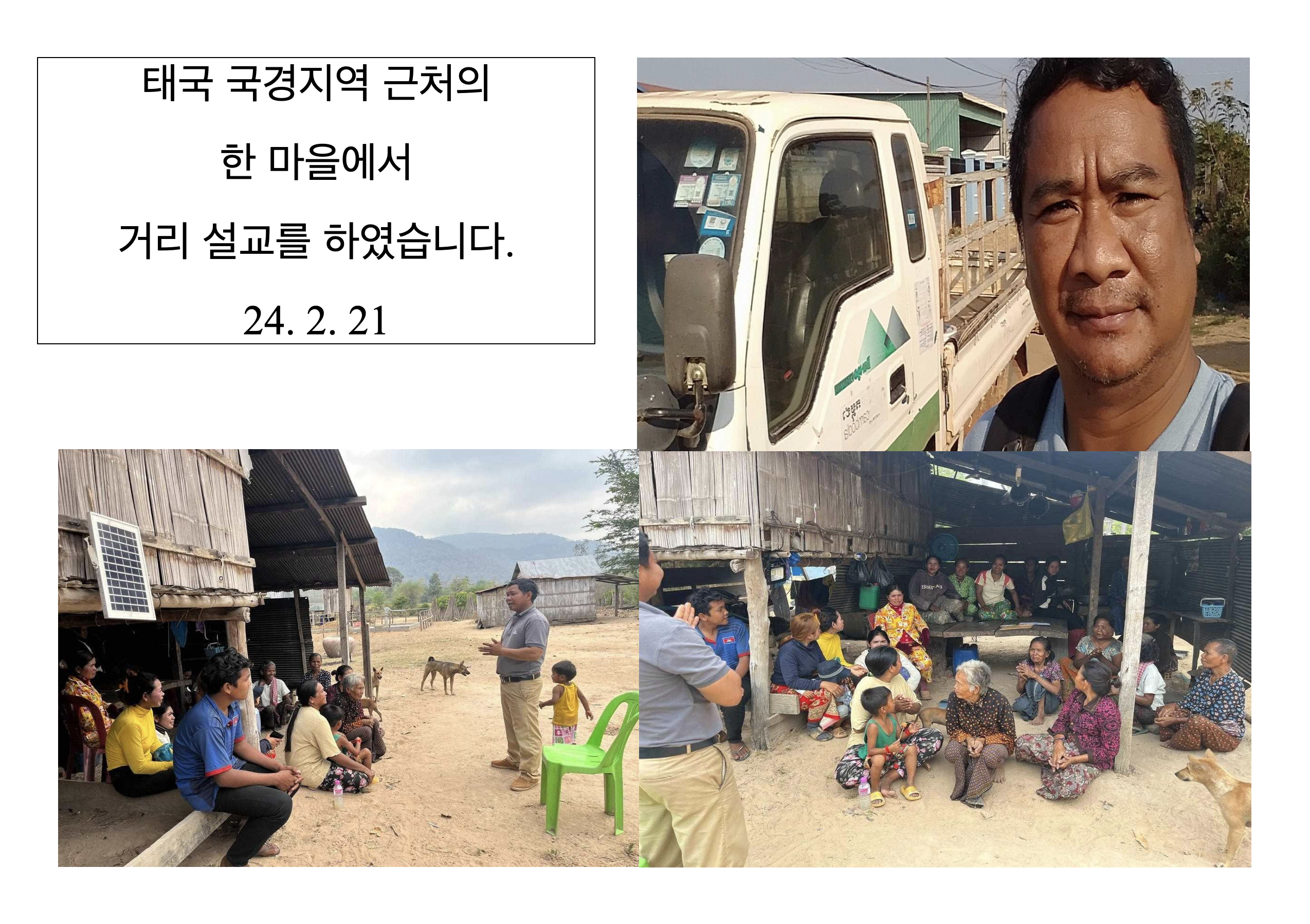 태국 국경지역 근처의 한 마을에서 거리 설교를 하였습니다. 2024.2.21