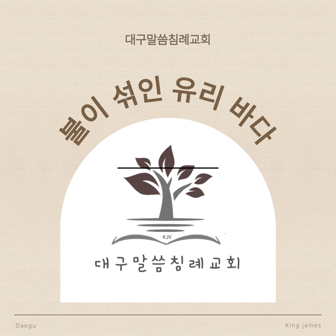 대구말씀침례교회 토요 성경공부불이 섞인 유리 바다 (요한계시록 15장 1절-2절)https://youtu.be/Eyqqb2Z80OA?si=eX_lSPJC0BHK4phX“그리고 내가 하늘에서 위대하고 놀라운 또 다른 표적을 보았는데 마지막 일곱 재앙들을 가진 일곱 천사들이더라. 이는 그것들 안에 [하나님]의 진노가 가득 채워져 있기 때문이라.” (요한계시록 15장 1절)“그러므로 너희, 하늘들아, 그리고 그것들 안에 거하는 너희들아, 크게 기뻐하라. 땅에 거주하는 자들과 바다에 거주하는 자들에게 화가 있기를 바라노라! 이는 마귀가 크나큰 격노를 가지고 너희에게 내려갔기 때문이니, 자신에게 짧은 시간밖에 없음을 그가 아는 까닭이라.”(요한계시록 12장 12절)“그러므로 예언자 다니엘에 의하여 언급된 황량하게..