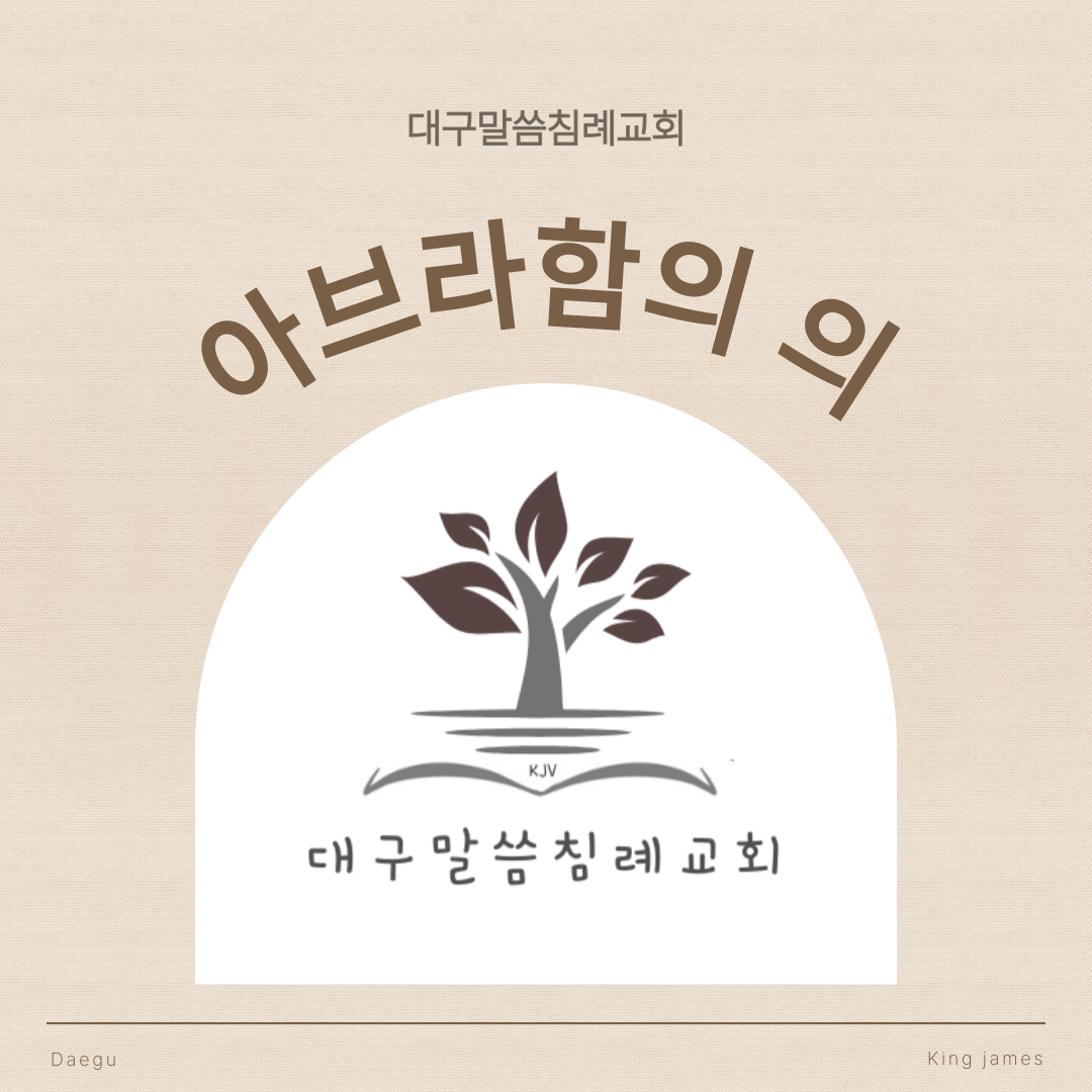 대구말씀침례교회 주일 성경공부아브라함의 의 (창세기 15장 6절)주일 성경공부 요약 및 성경구절“이에 그가 주를 믿었으니, 그분께서는 그것을 그에게 의로 여기셨더라.”(창세기 15장 6절)“그렇다면 이 복이 할례자에게만 임하느냐, 아니면 무할례자에게도 임하느냐? 이는 우리가 아브라함에게 믿음이 의로 간주되었다고 말하기 때문이라. 그렇다면 어떻게 그 믿음이 의로 간주되었느냐? 그가 할례자로 있었을 때냐, 아니면 무할례자로 있었을 때냐? 할례자로 있었을 때가 아니라 다만 무할례자로 있었을 때라…”(로마서 4장 9절-11절)“…그런 다음에 그가 믿음에서 나온 의의 인장, 곧 할례의 표적을 받았으니, 그 믿음은 그가 아직 할례받지 아니하였을 때 소유했던 것이라. 이는 그로 하여금 믿는 자들 모두의 조상이 되도록..