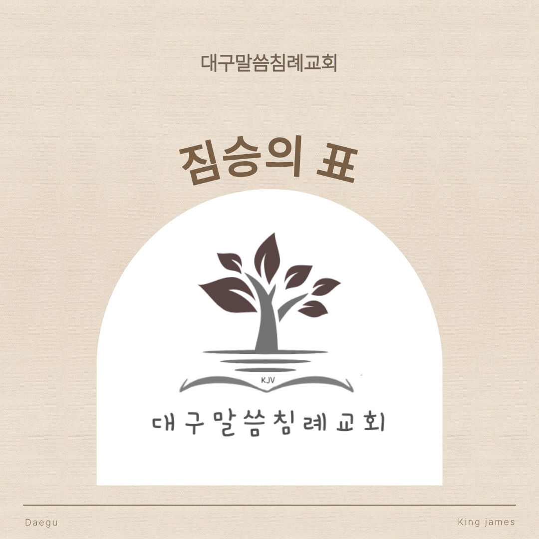 대구말씀침례교회 토요 성경공부짐승의 표 (요한계시록 13장 15절-18절)https://youtu.be/3vwI-F7V5RI?si=Y0_TDtfdqOCWpYY4 “그리고 그가 그 짐승의 형상에게 생명을 주는 권능을 가졌으니, 그 짐승의 형상으로 하여금 말하게도 하고, 그 짐승의 형상에게 경배하지 않으려는 자들은 다 죽임을 당하게도 하였더라.”(요한계시록 13장 15절)“그들의 우상들은 은과 금이요, 사람들의 손들에서 나온 작업물이니이다. 그것들이 입은 있으나 스스로 말하지 못하나이다. 그것들이 눈은 있으나 스스로 보지 못하나이다. 그것들이 귀는 있으나 스스로 듣지 못하나이다. 그것들이 코는 있으나 스스로 냄새 맡지 못하나이다. 그것들이 손은 있으나 스스로 잡지 못하나이다. 그것들이 발은 있으나 스스로 걷..