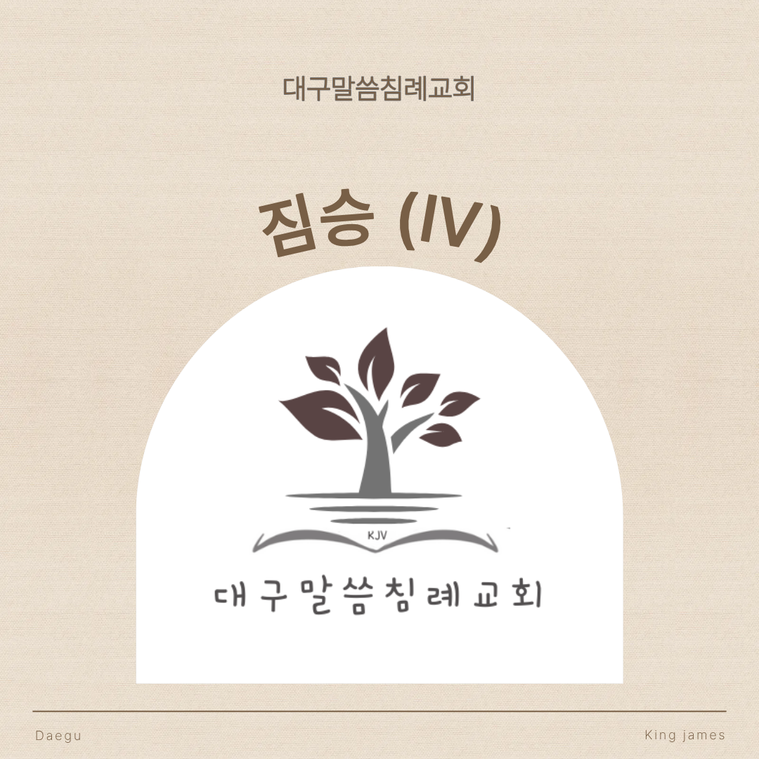 대구말씀침례교회 토요 성경공부짐승(Ⅳ) (요한계시록 13장 7절-11절)“그리고 성도들과 전쟁을 벌여서 그들을 이기는 권능이 그에게 주어졌더라. 또 모든 종족들과 어족들과 민족들을 거느리는 권능이 그에게 주어졌더라.”(요한계시록 13장 7절)“그러므로 [하나님]께 스스로 복종하라. 마귀에게 저항하라. 그리하면 그가 너희에게서 도망하리라.”(야고보서 4장 7절)“내가 보았는데, 바로 그 뿔이 성도들과 전쟁하였고 그들을 대적하여 승리하였더라.”(다니엘서 7장 21절)“그는 이와 같이 말하였더라. “네 번째 짐승은 땅 위에서 네 번째 왕국이 되리니 그것은 모든 왕국들과 상이할 것이요, 온 땅을 집어삼킬 것이며, 그것을 짓밟으면서 그것을 산산이 부술 것이라.”(다니엘서 7장 23절)“그리고 그는 지극히 높으신 ..