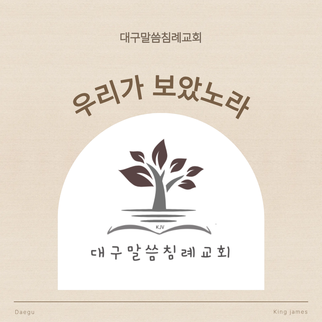 대구말씀침례교회 주일 성경공부네가 누구냐? (창세기 27장 1절-18절)“그러자 {주}께서 그녀에게 말씀하시기를, “두 민족들이 너의 태 안에 있으며, 두 부류의 백성이 너의 내부에서부터 분리되리라. 그런즉 한 백성이 다른 백성보다 강해질 것이요, 형이 동생을 섬기리라.” 하셨느니라.”(창세기 25장 23절)“사람의 마음속에 많은 계책들이 있느니라. 그럼에도 불구하고 주의 조언, 그것이 서리라.”(잠언 19장 21절)“이후에 이삭이 늙고 그의 두 눈이 흐릿하여져서 그가 볼 수 없게 되자 이러한 일이 있었으니, 그가 자신의 장남 에서를 불러 그에게 말하기를, “내 아들아.” 하자 그가 그에게 말하기를, “보소서, 내가 여기 있나이다.” 하였더라.”(창세기 27장 1절)“그리고 이삭의 날들은 일백팔십 년이었..
