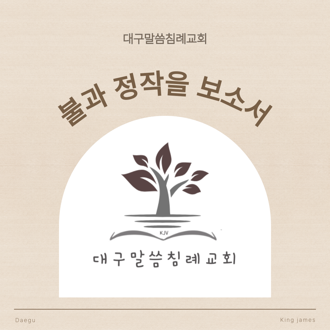 대구말씀침례교회 주일 설교겸손으로 옷 입으라 (베드로전서 5장 5절-7절)본문 말씀: 베드로전서 5장 5-7절5 마찬가지로 너희, 젊은 자들아, 장로들에게 스스로 복종하라. 진정 너희 모두가 서로 복종하고 겸손으로 옷 입으라. 이는 [하나님]께서 교만한 자들을 적대하시고 겸손한 자들에게 은혜를 주시기 때문이라.6 그러므로 [하나님]의 막강한 손 아래서 스스로 겸손하라. 이는 그분으로 하여금 합당한 때에 너희를 크게 높이시게 하려 함이라.7 너희의 모든 염려를 그분께 던지라. 이는 그분께서 너희를 돌보시기 때문이라.• 예수 그리스도는 겸손에 따른 순종의 모습으로 오셨다.“너희 안에 이 생각이 있게 하라. 이 생각은 그리스도 예수 안에도 있었느니라. 그분께서는 [하나님]의 형체로 계시기에 [하나님]과 동등하..