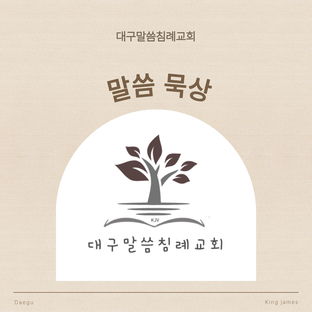대구말씀침례교회 주일 설교왕을 기쁘게 하는 처자 (에스더기 2장 1절-4절)https://youtu.be/j5zwSZsYLXo?si=6SGZCM97uhCbHmIE 본문 말씀: 에스더기 2장 1-4절1 이런 일들이 있은 후에 아하수에루스왕의 진노가 가라앉았을 때 그가 와슈티를 기억하였으니, 그녀가 무엇을 행하였는지와 그녀를 대적하여 어떤 칙령이 내려졌는지를 기억하였더라.2 그때 왕을 섬기던 그의 종들이 이같이 말하였더라. “왕을 위하여 어여쁘고 젊은 처녀들을 찾도록 허락하소서.3 그리고 왕께서는 그분의 왕국의 모든 속주들 안에서 관원들을 임명하시어 그들로 하여금 어여쁘고 젊은 처녀들을 모두 슈샨궁에 있는 여자들의 집으로 한데 모으게 하시고 궁녀들을 지키는 자인, 왕의 시종장 헤게의 관리에 두소서. 그리고 ..