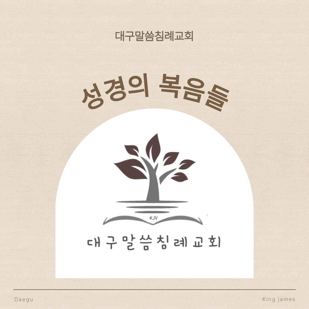 대구말씀침례교회 토요 성경공부성경의 복음들 (요한계시록 14장 6절)https://youtu.be/Zr5TEwQHdOM?si=Vnje7HHL0CubtOkh“그리고 나는 또 다른 천사가 하늘 한가운데를 나는 것을 보았는데 지상에서 거하는 자들에게와 각 민족과 종족과 어족과 백성 모두에게 선포하기 위한 영원한 복음을 가지고 있었더라.”(요한계시록 14장 6절)“그것은 또 다른 복음이 아니요, 다만 너희를 교란하고 그리스도의 복음을 왜곡하려는 어떤 이들이 있는 것이라. 그러나 우리나 하늘에서 온 천사라 할지라도 우리가 너희에게 선포해 온 것 외에 어떤 다른 복음을 너희에게 선포한다면 그는 저주를 받을지어다.”(갈라디아서 1장 7절-8절)“이는 나 또한 받은 것을 내가 무엇보다 먼저 너희에게 전달하였기 때문이니..