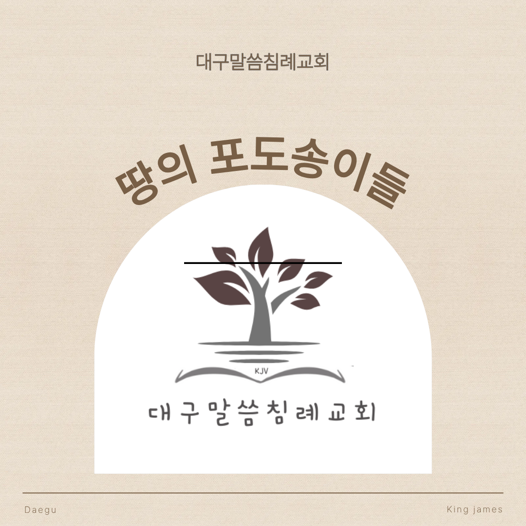 대구말씀침례교회 토요 성경공부동정들 (요한계시록 14장 4절-6절)https://youtu.be/vOVxmDje6o4 “이들은 여자들로 더럽혀지지 않은 자들이라. 이는 그들이 동정들이기 때문이라. 이들은 어린양이 가는 곳은 어디든지 그를 따르는 자들이라. 이들은 사람들 가운데서 구속받아 [하나님]과 어린양께 첫 열매들이 된 자들이었더라.”(요한계시록 14장 4)절“이제 성령께서 명확하게 전하시나니, 마지막에 가까운 시대들에 어떤 이들이 믿음으로부터 떠나 미혹하는 영들과 마귀들의 교리들에 관심을 두리라는 것이라…그들은 혼인을 금하고 음식들을 단절하라고 명령하나니, 그 음식들은 믿고 진리를 아는 자들이 감사들을 드리며 받아들이도록 [하나님]께서 창조하신 것들이라.”(디모데전서 4장 1절,3절)“혼인은 모든 ..