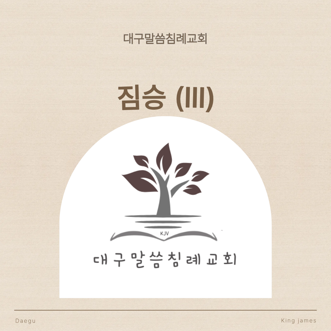 대구말씀침례교회 토요 성경공부짐승의 표 (요한계시록 13장 15절-18절)https://youtu.be/3vwI-F7V5RI?si=Y0_TDtfdqOCWpYY4 “그리고 그가 그 짐승의 형상에게 생명을 주는 권능을 가졌으니, 그 짐승의 형상으로 하여금 말하게도 하고, 그 짐승의 형상에게 경배하지 않으려는 자들은 다 죽임을 당하게도 하였더라.”(요한계시록 13장 15절)“그들의 우상들은 은과 금이요, 사람들의 손들에서 나온 작업물이니이다. 그것들이 입은 있으나 스스로 말하지 못하나이다. 그것들이 눈은 있으나 스스로 보지 못하나이다. 그것들이 귀는 있으나 스스로 듣지 못하나이다. 그것들이 코는 있으나 스스로 냄새 맡지 못하나이다. 그것들이 손은 있으나 스스로 잡지 못하나이다. 그것들이 발은 있으나 스스로 걷..