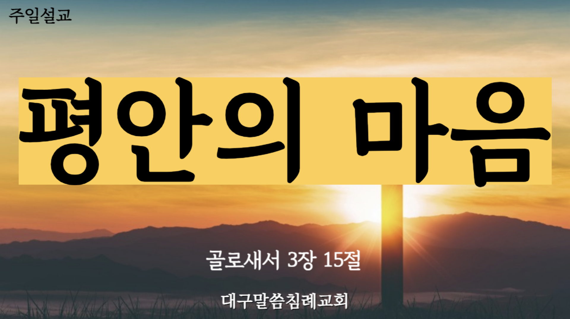 - ”그리고 [하나님]의 화평이 너희의 마음을 주관하게 하라. 그 화평에 이르도록 너희 또한 한 몸 안에서 부르심을 받은 것이니라. 그리하여 너희가 감사하는 자가 되라.”(골로새서 3장 15절)