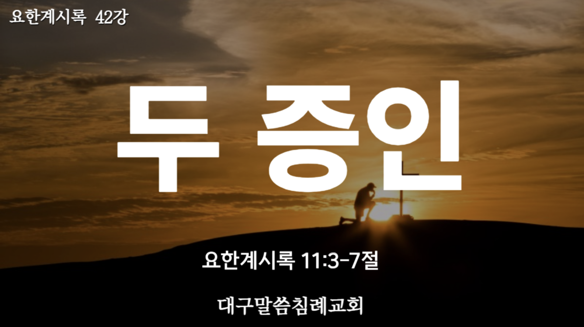 - “그런즉 내가 나의 두 증인에게 권능을 주겠노라. 그리하면 그들이 굵은 베로 옷 입혀진 채 일천이백육십 일 동안 예언하리라.”(요한계시록 11장 3절)