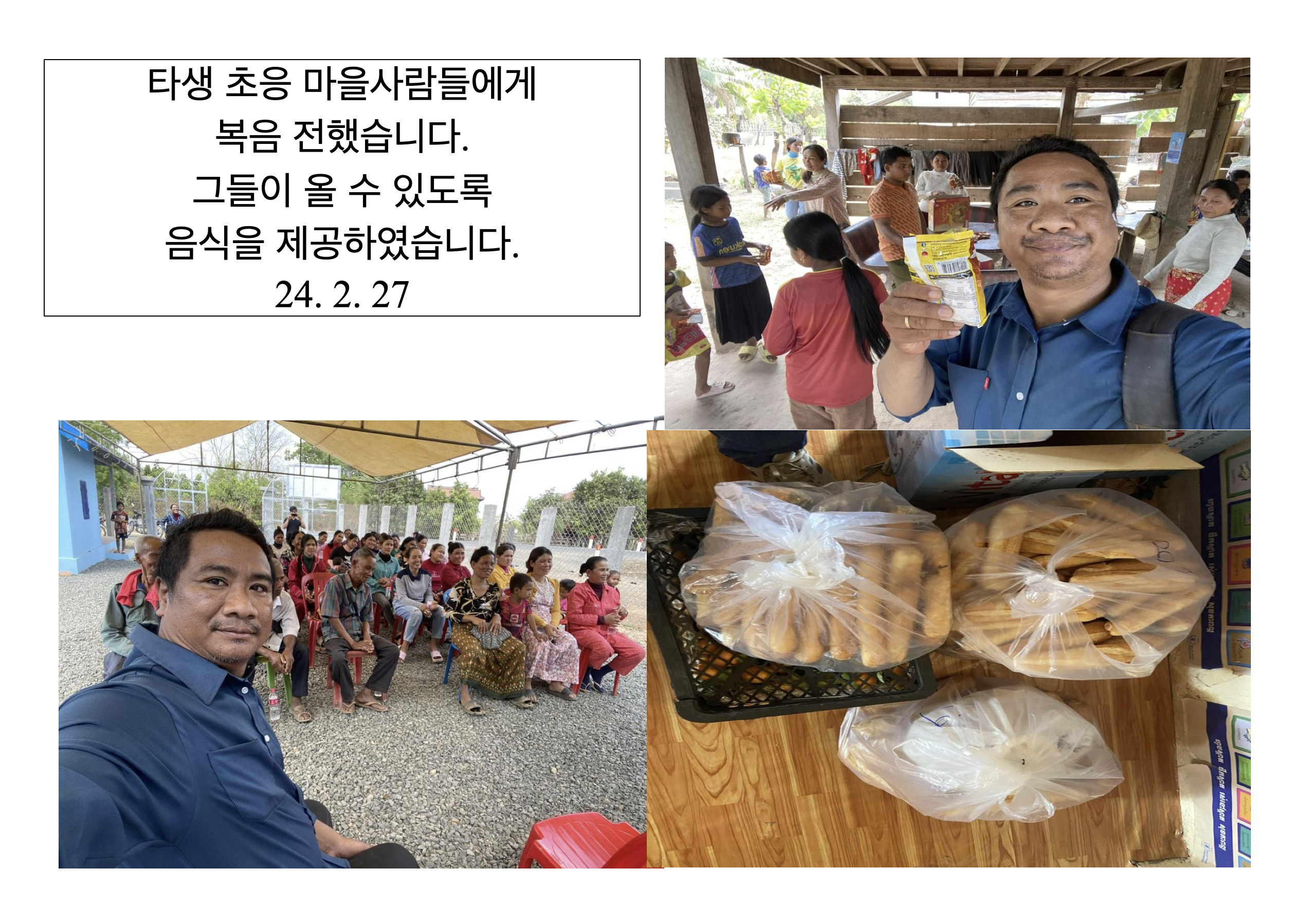 타생 초응 마을사람들에게 복음 전했습니다. 그들이 올 수 있도록 음식을 제공하였습니다. 2024.2.27