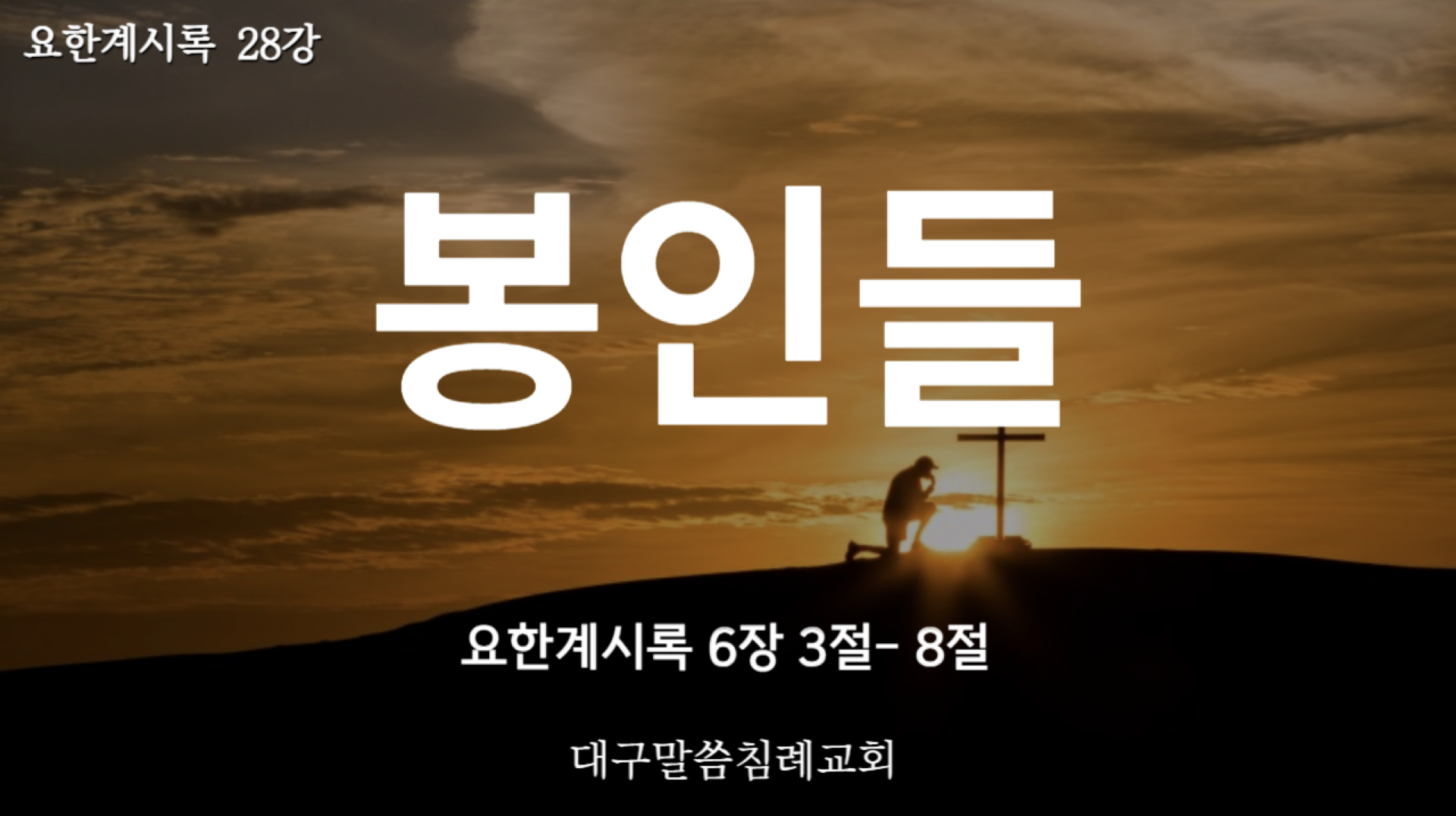 - “다음으로 그분께서 둘째 봉인을 여셨을 때 둘째 짐승이 말하기를, “와서 보라.” 하는 것을 내가 들었노라.”(요한계시록 6장 3절)