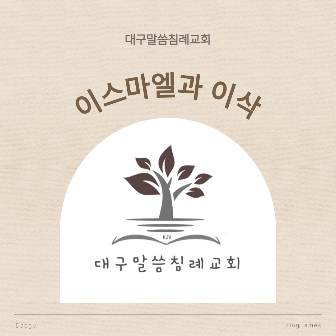 대구말씀침례교회 주일 성경공부이삭의 출생 (창세기 21장 2절-5절)“그러자 [하나님]께서 이같이 말씀하셨느니라. “너의 아내 사라가 정녕 너에게 한 아들을 낳아 주리라. 그런즉 너는 그의 이름을 이삭이라 부를지니라. 그리고 내가 영원한 언약으로 그와 그의 뒤를 잇는 그의 씨와 더불어 나의 언약을 확립하겠노라.”(창세기 17장 19절)“그리고 하갈이 아브람에게 이스마엘을 낳아 주었을 때 아브람은 팔십육 세였더라.”(창세기 16장 16절)“이후에 아브람이 구십구 세가 되었을 때, {주}께서 아브람에게 나타나셨고 그에게 이같이 말씀하셨느니라. “나는 전능한 [하나님]이라. 내 앞에서 살아가라. 그리고 너는 완전하라. 그런즉 나는 나와 너 사이에 나의 언약을 맺으리니, 너를 지극히 번성하게 하겠노라.”(창세기..