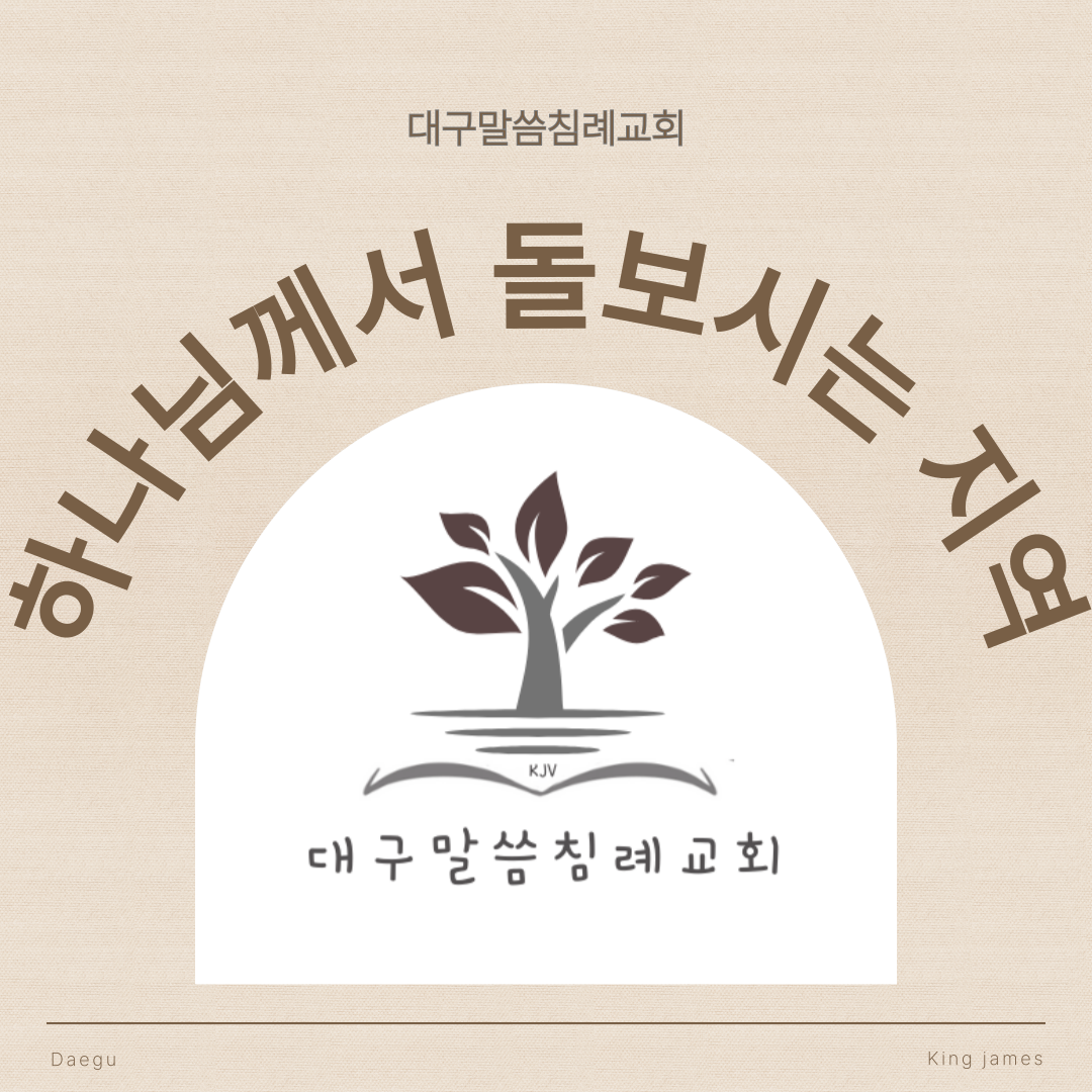 대구말씀침례교회 주일 설교시나이산에서 주신 비전 (출애굽기 19장 1절-6절)주일설교 요약 및 성경구절본문 말씀: 출애굽기 19장 1-6절셋째 달에 이스라엘 자녀들이 이집트 지역에서 나와 앞으로 나아갔으니, 같은 날 그들이 시나이 광야 가운데로 들어왔더라. 이는 그들이 르피딤에서 출발하여 시나이 사막에 이르렀으며 광야 가운데 진을 쳤기 때문이라. 그리하여 이스라엘은 거기 산 앞에서 주둔하였더라. 그리고 모세가 [하나님]께로 올라갔으니, {주}께서는 산에서 그를 부르시며 이같이 말씀하셨느니라. “이와 같이 너는 야곱의 집에 말하고 이스라엘 자녀들에게 알릴지니라.‘내가 이집트인들에게 무엇을 행하였는지와 내가 어떻게 독수리들의 날개들로 너희를 받쳐서 너희를 나에게로 데려왔는지 너희가 보아 왔느니라.그러므로 이..